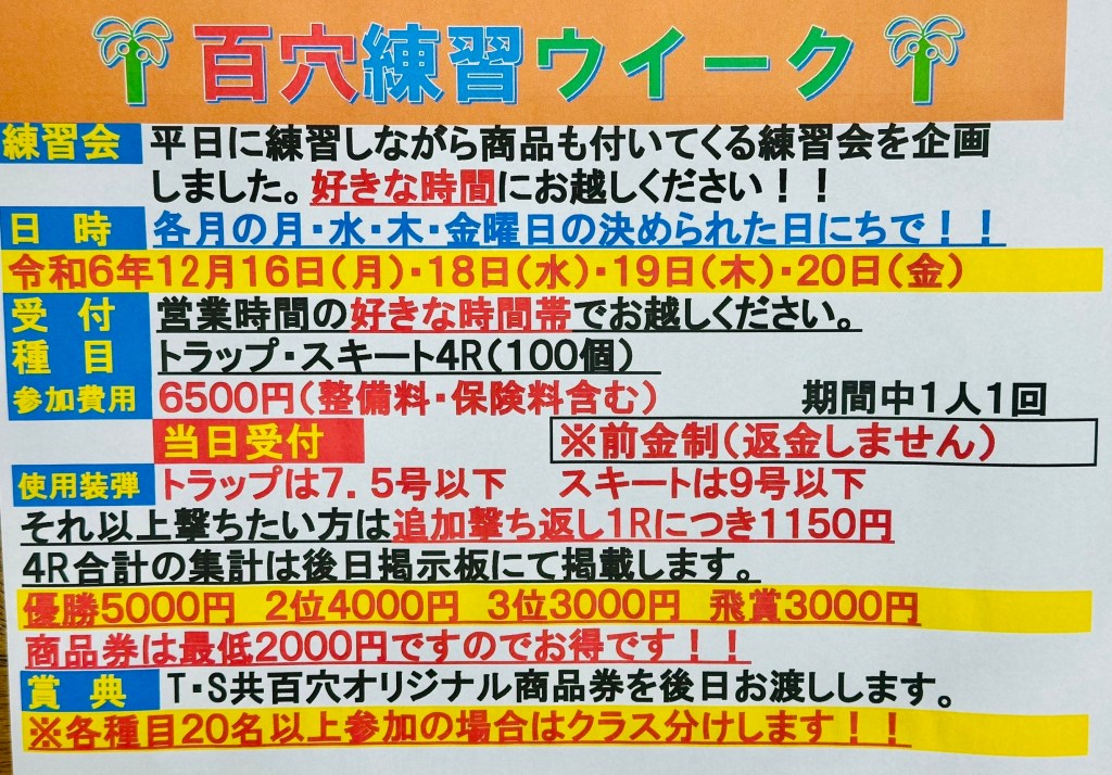 2024年12月百穴練習ウイーク
