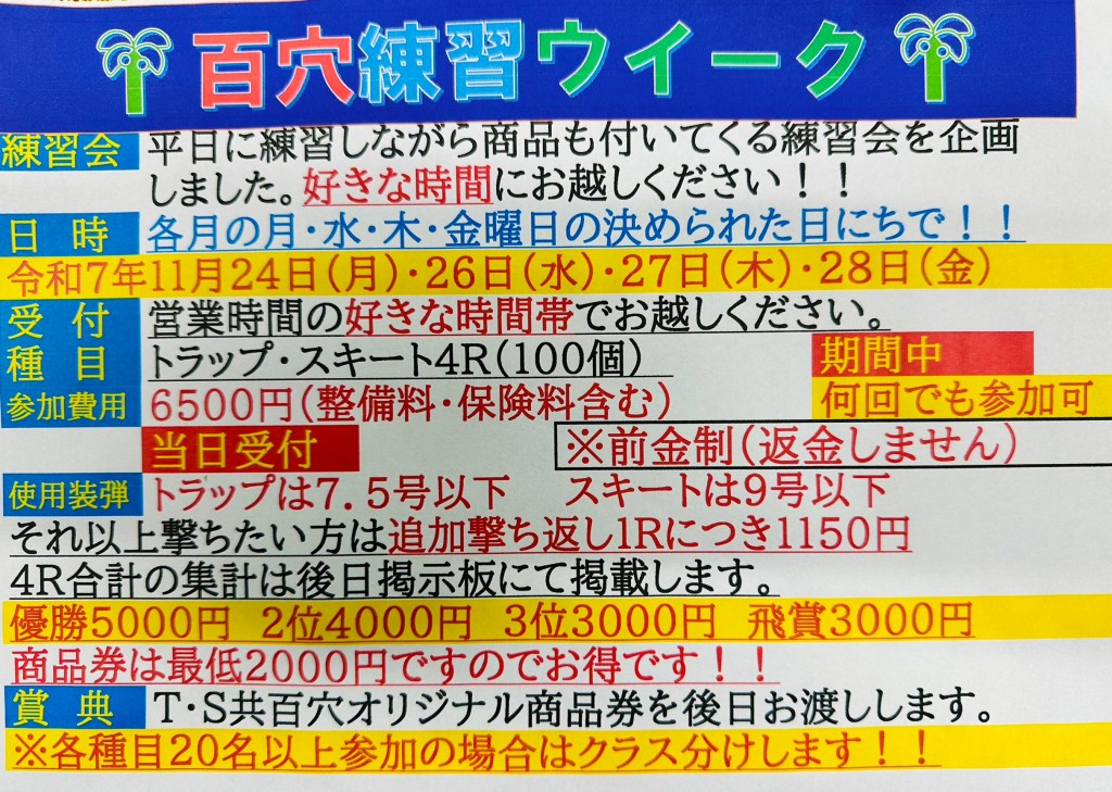2025年11月百穴練習ウイーク