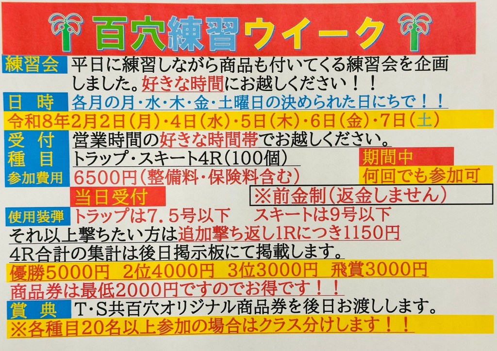 2026年2月百穴練習ウイーク